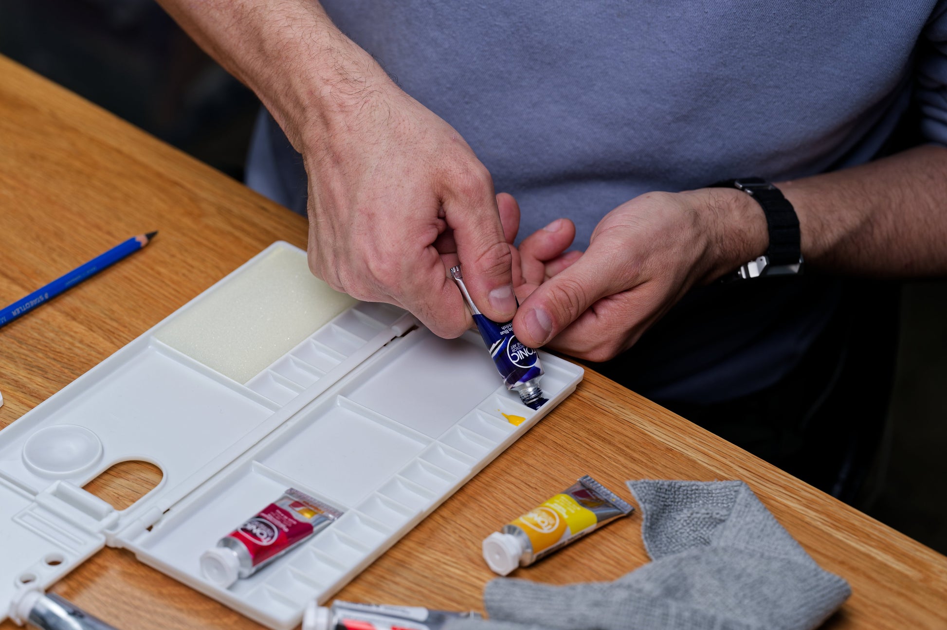 Simple, portable, and very affordable, our 25-well watercolor palette comes with copious mixing space — including a small interior section that folds out for even more space!