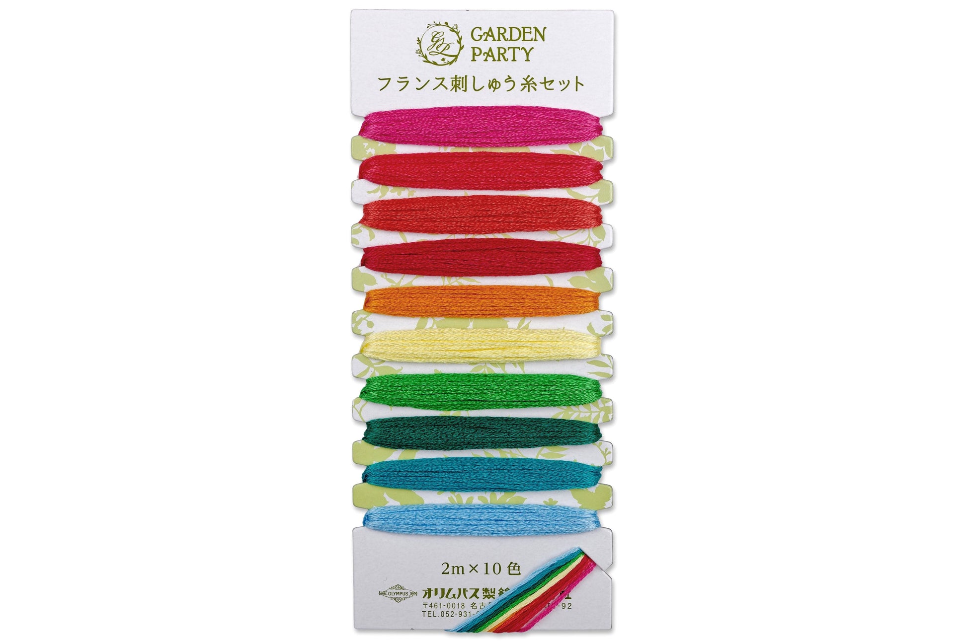 Outstanding luster and expressive colors are the key features of Olympus embroidery floss, which reveals its 100-year history in the beauty of each stitch. You'll find 10 perfectly coordinated colors on each Garden Party card, with two meters (2.2 yd.) of thread per color.
