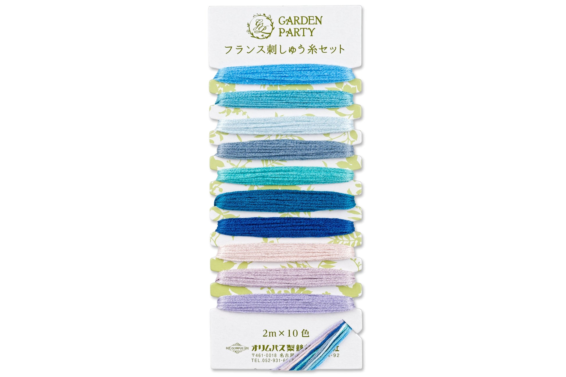 Outstanding luster and expressive colors are the key features of Olympus embroidery floss, which reveals its 100-year history in the beauty of each stitch. You'll find 10 perfectly coordinated colors on each Garden Party card, with two meters (2.2 yd.) of thread per color.