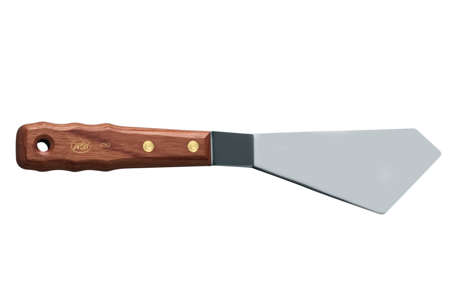 New Generation XL Palette Knives are technical tools for moving stiff ink and paint, especially in professional and industrial environments. These large, Italian-made knives have ergonomic hardwood handles, brass fittings, and electroplated steel blades that release color easily.