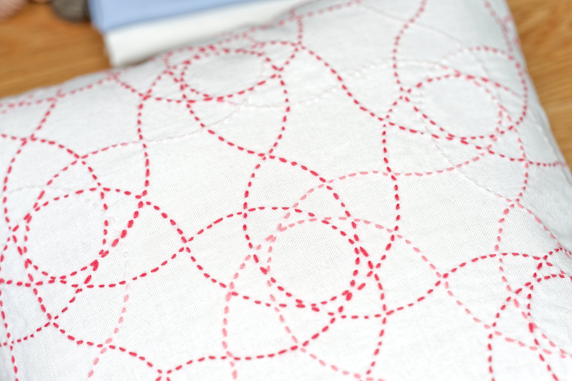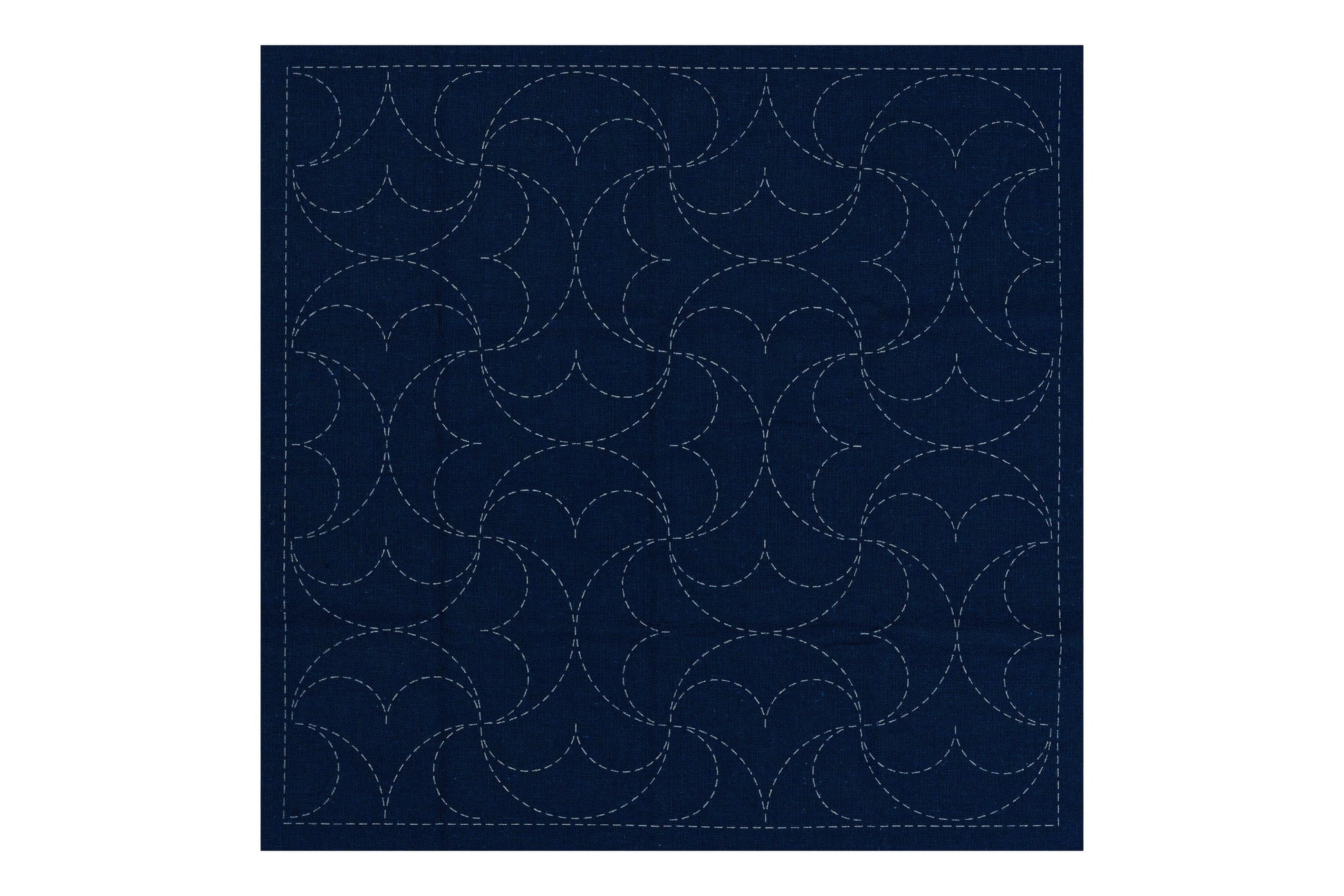 This 100% cotton sashiko cloth is deep blue, with a hanmaru (half-circle) pattern in wash-away white ink. Sew along the dashed lines to create the pattern stitch by stitch.
