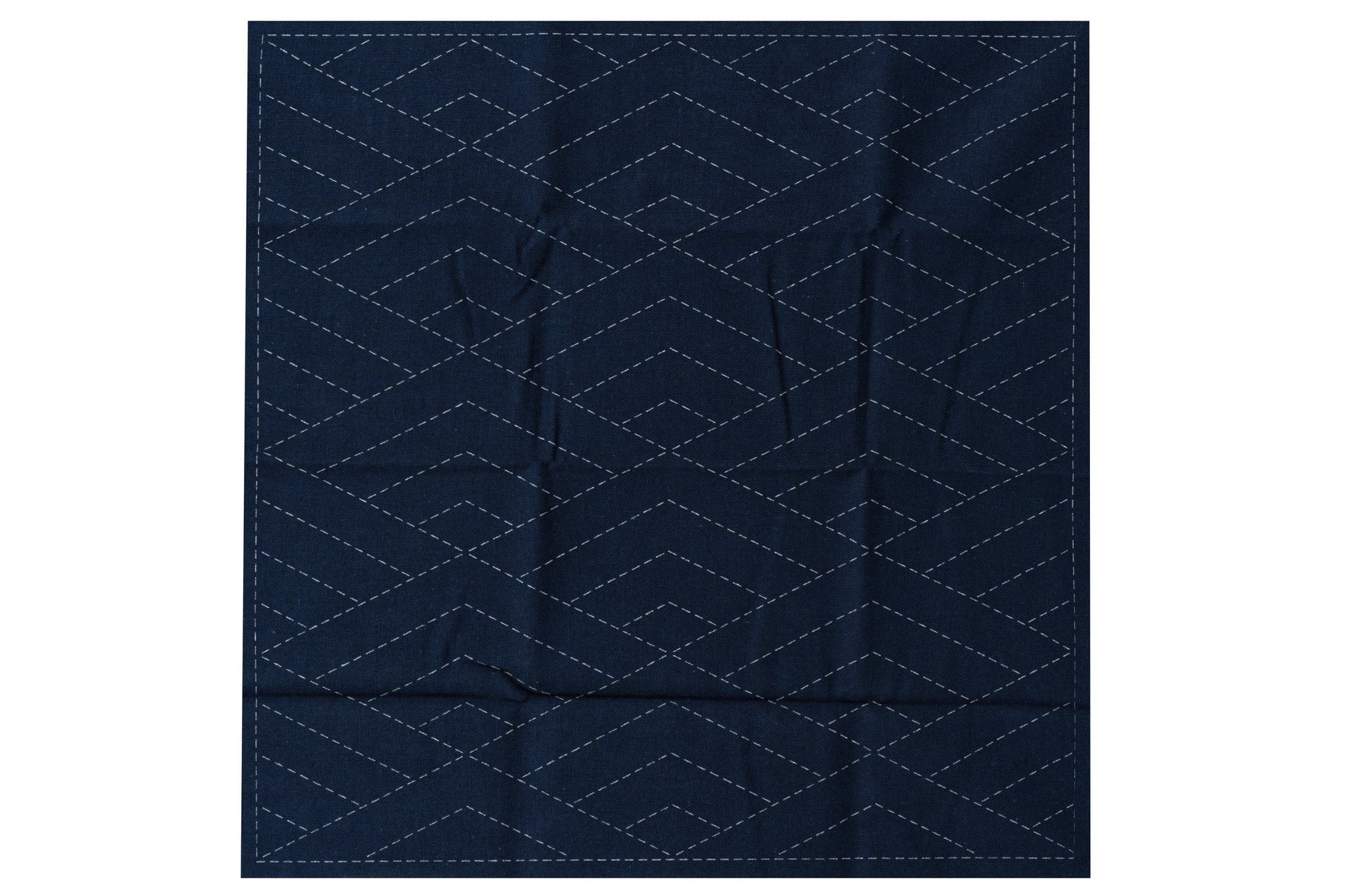 This 100% cotton sashiko cloth has a hishi-seigaiha (diamond waves) pattern in wash-away white ink. Sew along the dashed lines to create the pattern stitch by stitch.