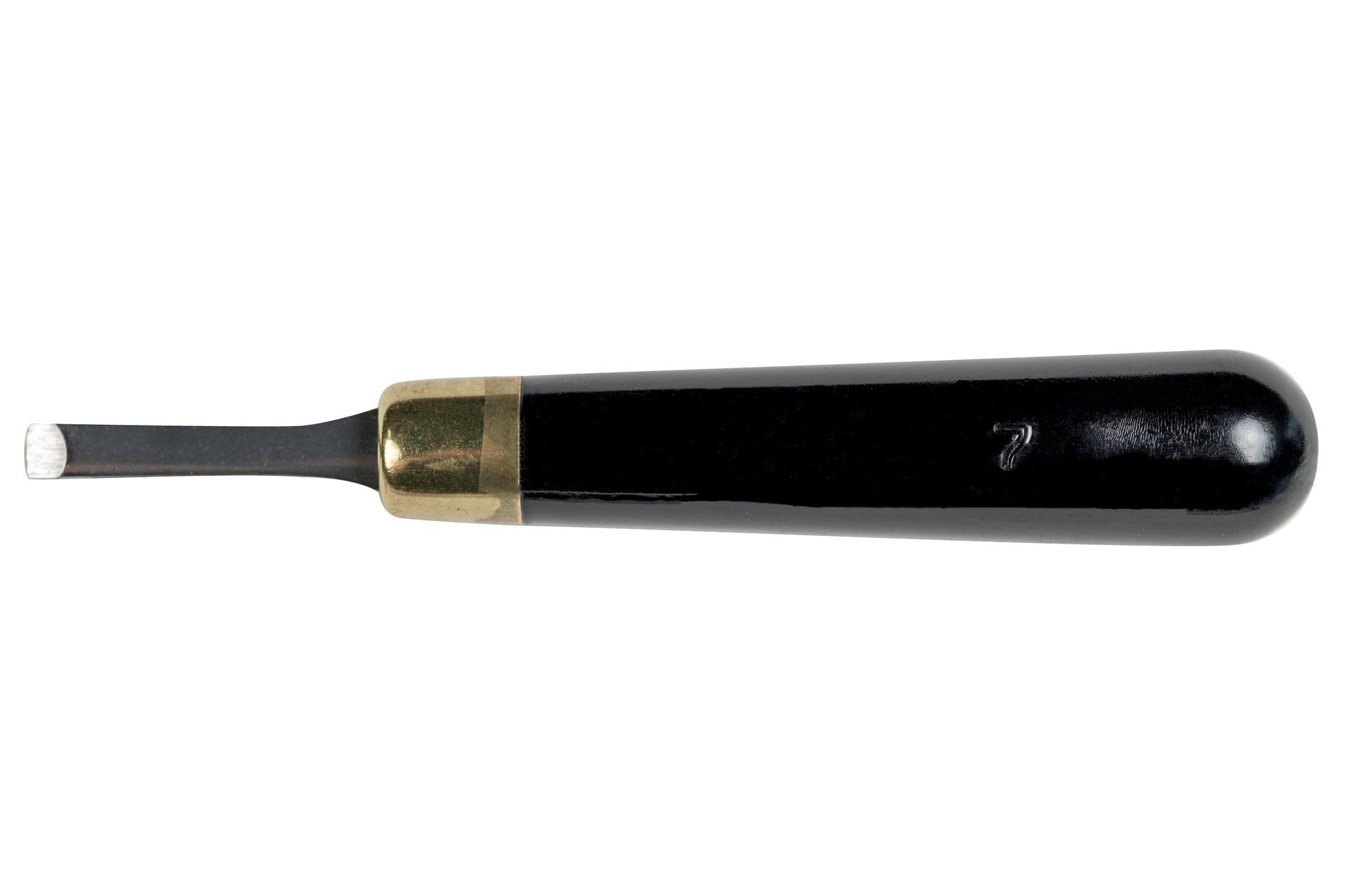 Available in a variety of shapes. This is #307, with a narrow, flat chisel shape.