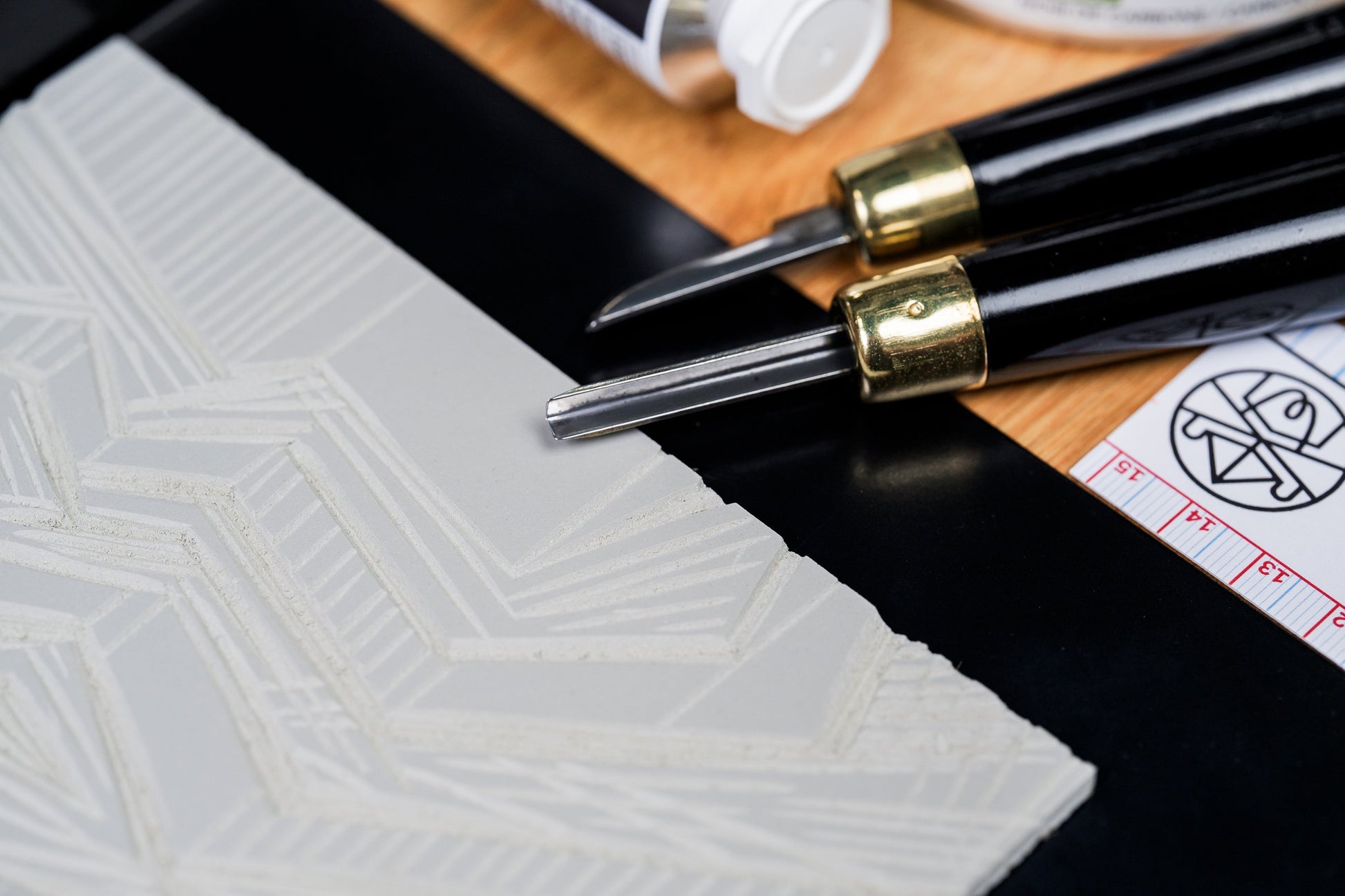 Made in Italy from tempered steel, RGM Linoleum Chisels are high-quality, affordable tools for relief printmaking. Sharper and stronger than the interchangeable blades found in printmaking kits, RGM chisels are fused to their shock-resistant fiberglass handles and reinforced with brass ferrules.