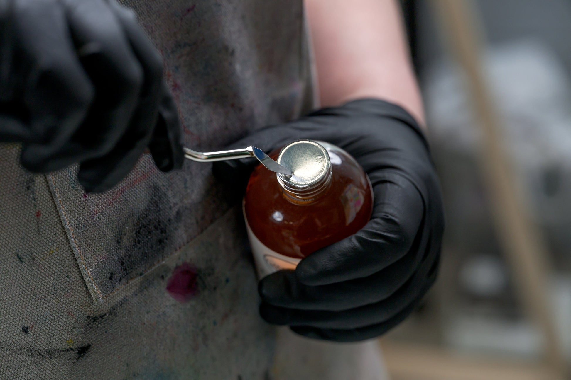 The larger knives (#94 and up) are meant for mixing larger amounts of paint, scraping palettes, and other tough jobs. These workhorses are called palette knives. Their blades are thicker and connect directly to the handle for superior leverage and strength.