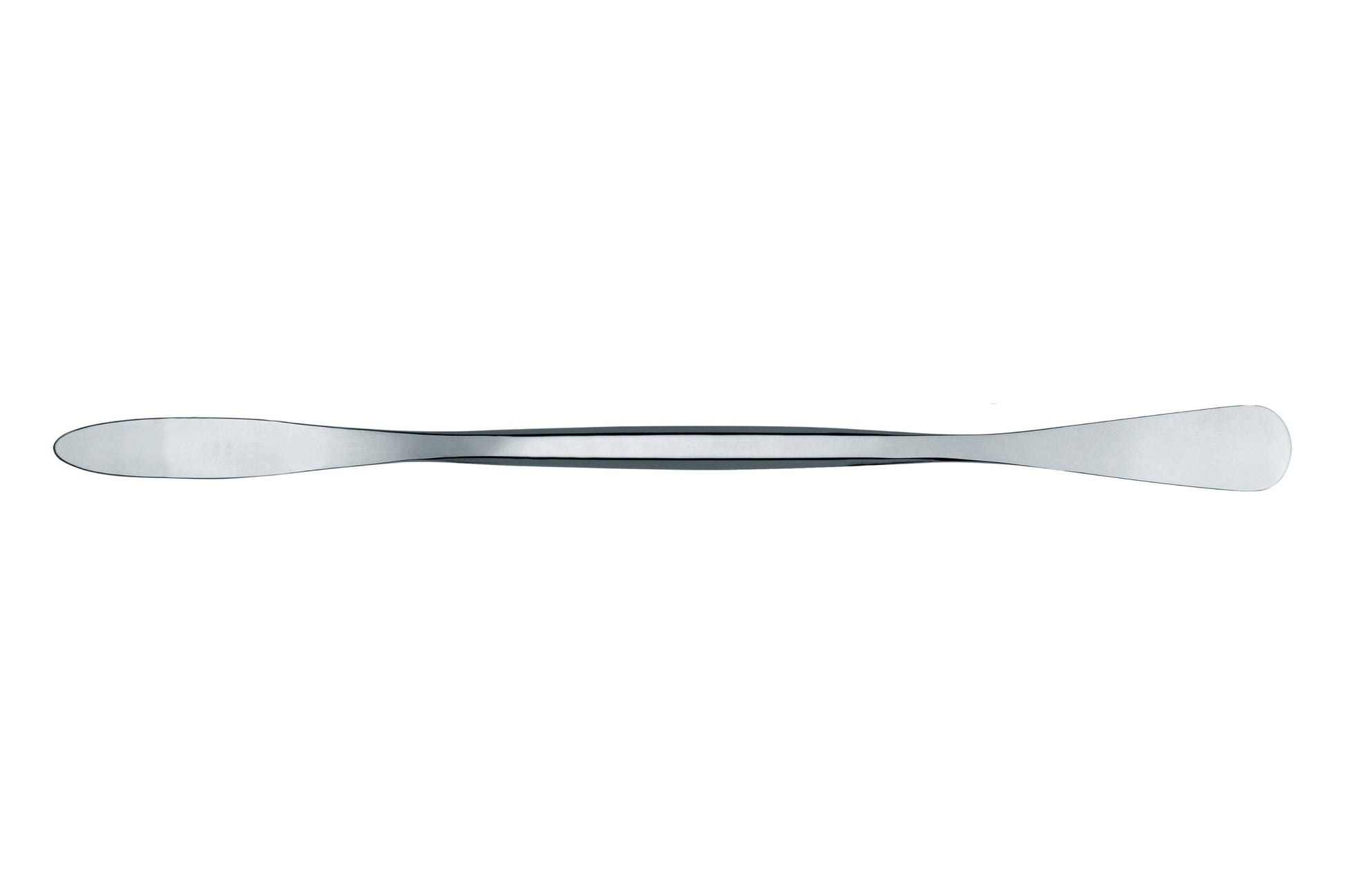 RGM Sculpture Tool #703 is a narrow, double-ended spatula, thin and flexible at both ends, with a rounded tip on one side and a narrow tapered tip on the other side. The narrow edges and tip of the tool are suitable for fine detail.