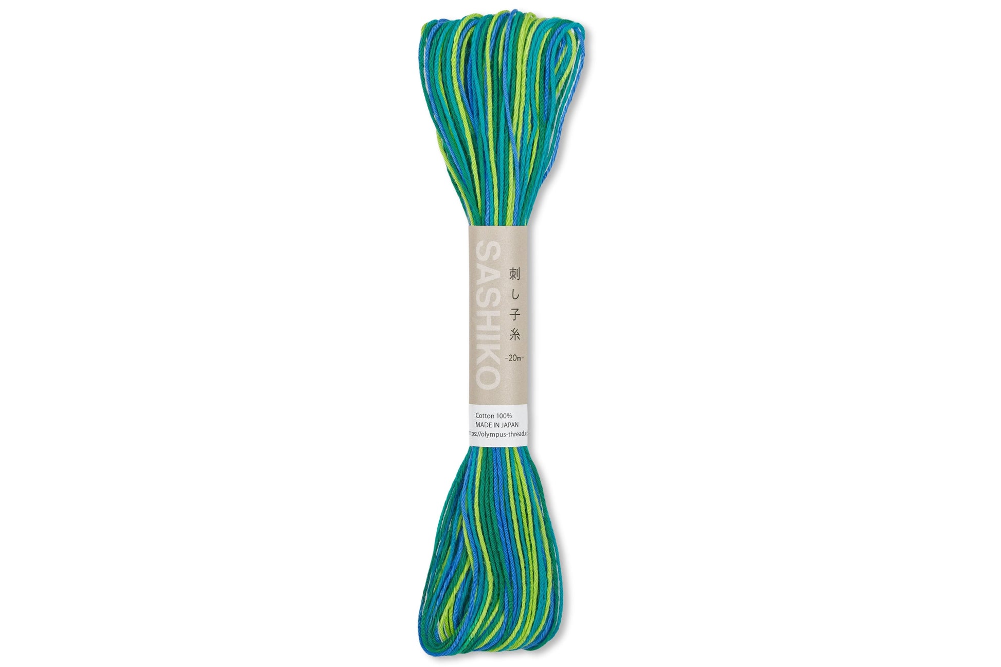 Variegated sashiko skeins are dyed in multiple colors; each skein is a little bit different! 20 meters / 22 yards per skein.